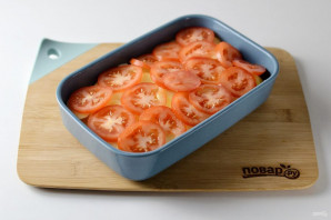Потым нарэжце памідоры кружочкамі, выкладзіце ў форма.