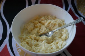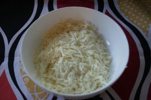 Натрите на терке брынзу. Добавьте к ней яйца, молоко, соль, специи по вкусу. Перемешайте.