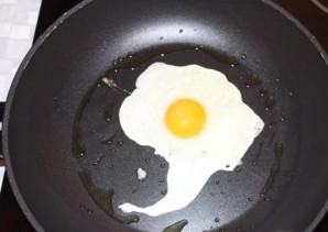 І пакуль біфштэкс дагатоўваецца да гатоўнасці, памыем скавароду, нальём на яе невялікую колькасць расліннага алею і зажарым адно яйка, крыху пасаліўшы яго пасля прыгатавання.