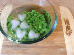 3. Гарбачак зварым у пасоланай вадзе хвілін 8-10, пасля перакладзем у місачку з вадой і ледам, каб гарбачак застаўся зялёным.