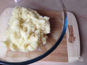 4. Бульба гатовая, размясіце яе ў пюрэ. Калі вы будзеце выкарыстоўваць бульбяное пюрэ з учораўняга абеду, і яно было прыгатаванае з малаком, дадайце трохі мукі, а яшчэ лепш — сухароў, каб біткічкі не "расплыліся" падчас смажэння.