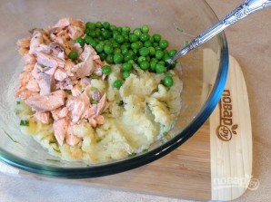 "А не прасцей зрабіць бульбяное пюре, запечыць рыбу і падаць гэта ўсё з гарошкам?" — спытаеце вы. Прасцей, але на талерках у 3-4 чалавек ваш варыянт, прыгатаваны з дадзенай колькасці прадуктаў, будзе выглядаць бедна, вы ж не супяречаеце? Таму давайце зрабім смачныя цацечкі, якім усе будуць рады, тым больш, што можна выкарыстаць астаткі пюре ад учораўшняга абеду ці вячэры :)