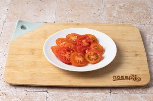 Помидоры черри нарежьте кружочками.