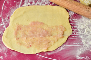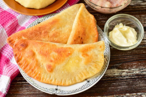 Выпечка готовится просто и быстро. Для приготовления таких чебуреков следует использовать качественное сливочное масло. В качестве фарша подойдет не только куриный, но и свиной или говяжий Можно подавать с чаем или кофе.