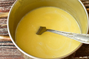 Влейте воду, 20 мл. растительного масла, выложите сливочное масло. Растопите все ингредиенты на водяной бане или в микроволновой печи.