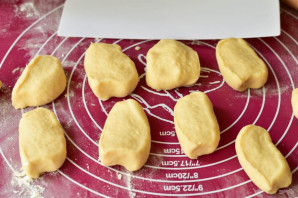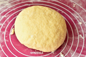 Раскатайте тесто колбаской, нарежьте ее на кусочки.