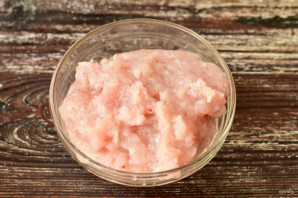 К фаршу добавьте лук, который перекрутите на мясорубке, соль и перец. Хорошо все перемешайте.