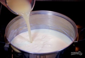6. Дадайце курны бульён у смяшаны са сметанкай і варыце 10 хвілін.