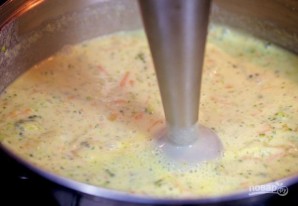 8. Пагружным блендэрам здробніце агародніну, пакуль кансістэнцыя супу не стане мяккай.