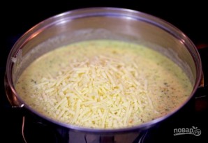 9. Сыр натрыце на дробнай цёрцы, каб хутчэй расплаўляўся. Не давайце закіпець крэм-супу.