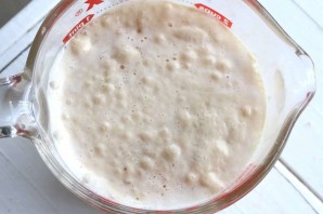 1. Смешайте теплую воду с дрожжами, сахаром и оставьте на 5-7 минут в тепле.