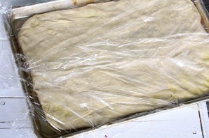 9. Накройте тесто пленкой и оставьте еще на 45 минут.