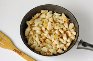 Дадайце галушкі і прагрэйце ўсё разам яшчэ некалькі хвілін. Галушкі з смажаным луком гатовыя.