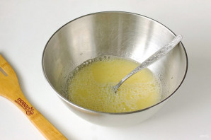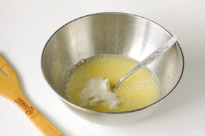 У глыбокім посудзе змяшайце ваду, яйка і алей. Дадайце 0,5 ч.л. солі і ўсё крыху збіце.