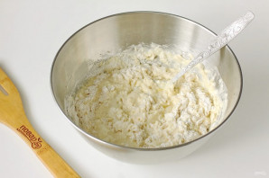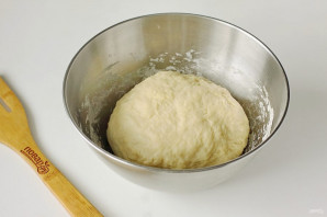 Мукі можа пайсці крыху менш, чым паказана ў рэцэпце. Цеста не павінна прыліпаць да рук, кансыстэнцыя прыкладна як на пельмені. Накрыйце цеста рэчоткай і дайце палежаць 20 хвілін.