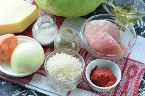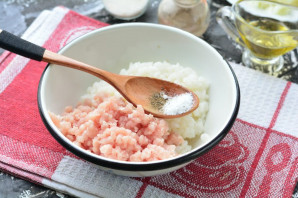Прапусціце свініну праз мяснарубку і дадайце да ружа. Прыгатуйце начынне для голубцоў, змяшайце, пасаліце і паперчыце па смаку.