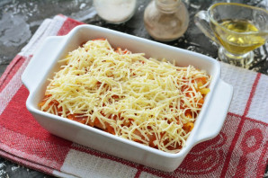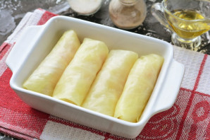 Пасыпце голубцы цёртым сырам і пастаўце запякацца ў духоўку пры тэмпературы 180 градусаў на 40 хвілін.