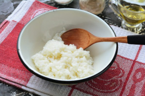 Зварыце рыс да паўгатоўнасці ў пасоленай вадзе 7-8 хвілін, затым адцядзіце ваду. Рыс ахалодзьце.
