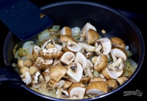 3. На скавародзе на раслінным алеі падсмажце цыбулю і грыбы да паўгатоўнасці.