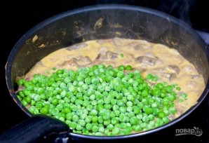 6. Да сметанковаму соусу дадайце гарох, пасаліце па смаку. Падавайце залиўку з любым гарнірам.
