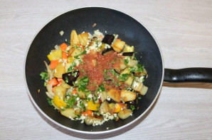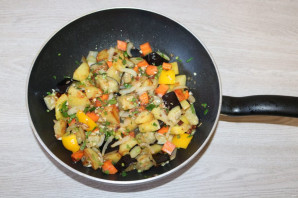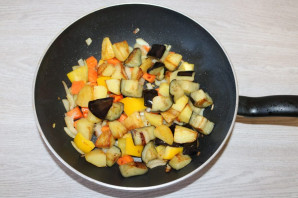 З баклажанаў зліце вылучаную вадкасць, паджарце.