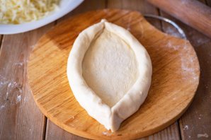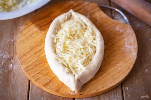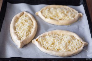 Каждую лодочку из теста заполните тертым сыром.