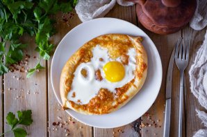 Готовые хачапури по-аджарски сразу же подавайте к столу.
