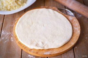 Все тесто поделите на 3 части. Каждую часть раскатайте скалкой в лепешку диаметром примерно в 20 см.