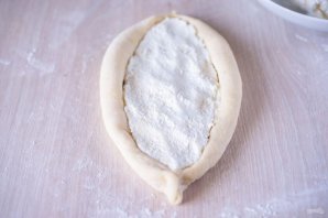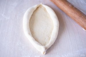 Края лепешки подкатайте валиками и сформируйте лодочку, как на фото.