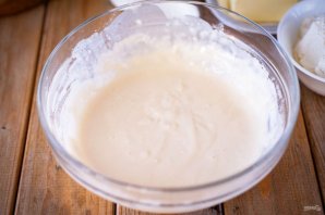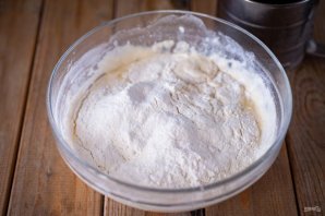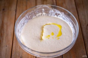 Перемешайте эти ингредиенты до получения однородной смеси — это опара. Оставьте опару в миске на 30 минут в покое, накрыв при этом миску кухонным полотенцем.
