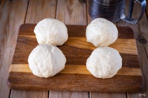 Поделите тесто на 4 части.