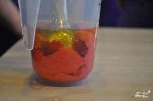 В чашу блендера влейте оливковое масло, положите малинку, соль и выдавите лимонный сок. Если в лимоне есть косточки, следите, чтоб они не попали в чашу. Хорошенько все взбейте при помощи погружного блендера.