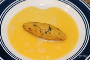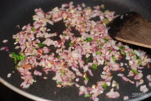 1. Пасмажце дроблёны лук на слівачаным масле на патэльні да залатога колеру. Дадайце куркуму, соль і перац па смаку.