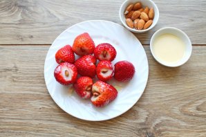 У цмінікі выдаліце хвостык і зрабіце невялікі надраз. Мінджаль абвальвайце ў згушчаным малоцы і цалкам устаўце ў сярэдзіну ягады з боку хвостыка ў надраз.