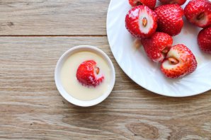 Кожную ягадку апусціце ў згусцёнае малако і дайце лішняму сцечы.