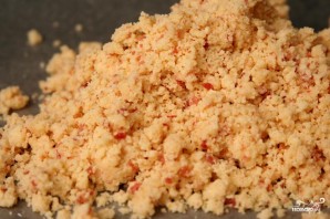 1. Смешать муку, соль, тертый сыр и сливочное масло в миске кухонного комбайна до получения однородной консистенции. Добавить около ¼ чашки сливок (или молоко пополам со сливками) и перемешать. Продолжать добавлять по 1 чайной ложке сливок до тех пор, пока тесто не будет хорошо держаться вместе. Тесто не должно быть липким. Добавить измельченный бекон и перемешать в комбайне несколько раз, пока он равномерно не распределится по тесту.
