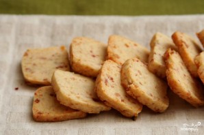 Выпечка готовится просто и быстро. По этому рецепту у вас получится около 18 коржиков (или больше, если вы нарежете тесто тоньше). Коржики просты в приготовлении и готовятся очень быстро из элементарных ингредиентов. Вместо бекона вы можете использовать панчетту, который лучше сочетается с Пармезаном. Если вы нарежете тесто указанной в рецепте толщины, у вас получается коржики, если тоньше – выпечка будет похожа на крекеры