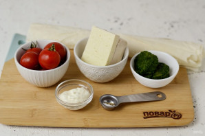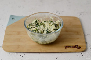 Для начинки измельчите тофу с постным майонезом блендером. Шпинат потушите до испарения жидкости, добавьте к тофу, посолите и поперчите по вкусу.