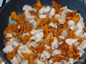 Дадайце лясныя грыбы. Пасмажце ўсё разам каля 5 хвілін.