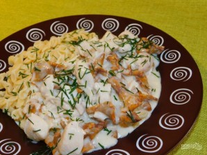 Курыца з грыбамі ў часночным соусе