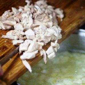 Пасля гэтага вяртаем у суп курыную цягліцу (звычайна, не з усёй курыцы — а, напрыклад, толькі з грудкі ці бёдраў).