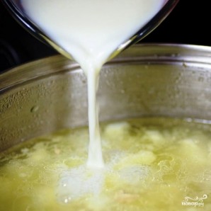 Варым каля 5 хвілін на сярэднім агні, потым увадзім у суп малако.
