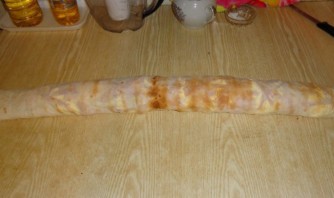 Скручиваем лаваши в тугой рулет.