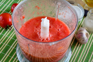 Измельчите помидоры в блендере или мясорубке.