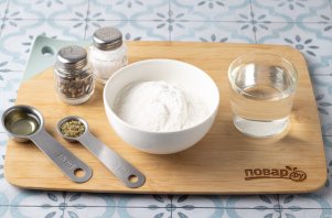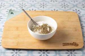 Муку отдельно смешайте с сушёными итальянскими травами и чёрным молотым перцем.
