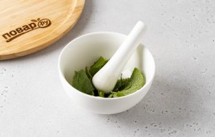 Аддзяліце лісце мяты ад стэбла. Дрэнна разамельце іх пяшчоркай ці проста парвіце на невялікія кавалачкі, каб яны пушчылі сок.