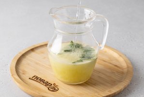 Пералейце ў гарбатку сок лайма і яблыка, дадайце сіроп тапінамбура і мяту.