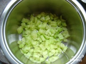 Агуркі ачысціць і нарэзаць дробна. Скласці ў кастрылю.