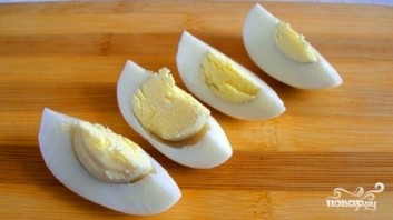 Яйкі зварыць і нарэзаць чвэрцямі.