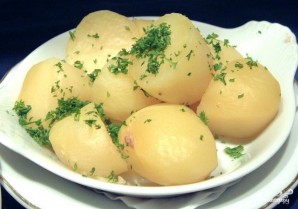 Картофель зварыць і пасыпаць зелянінёй.